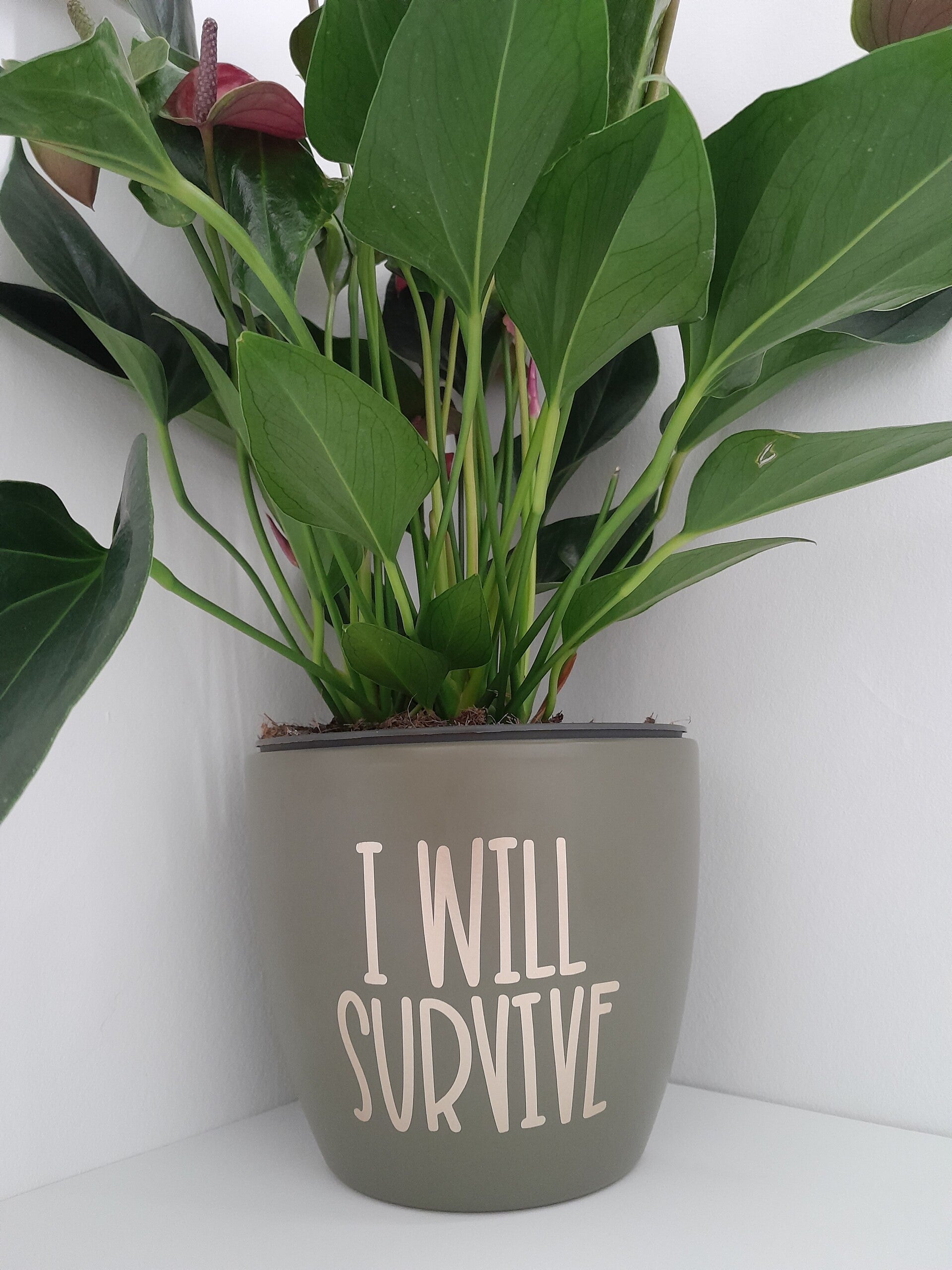 Tekst voor bloempot "I will survive"