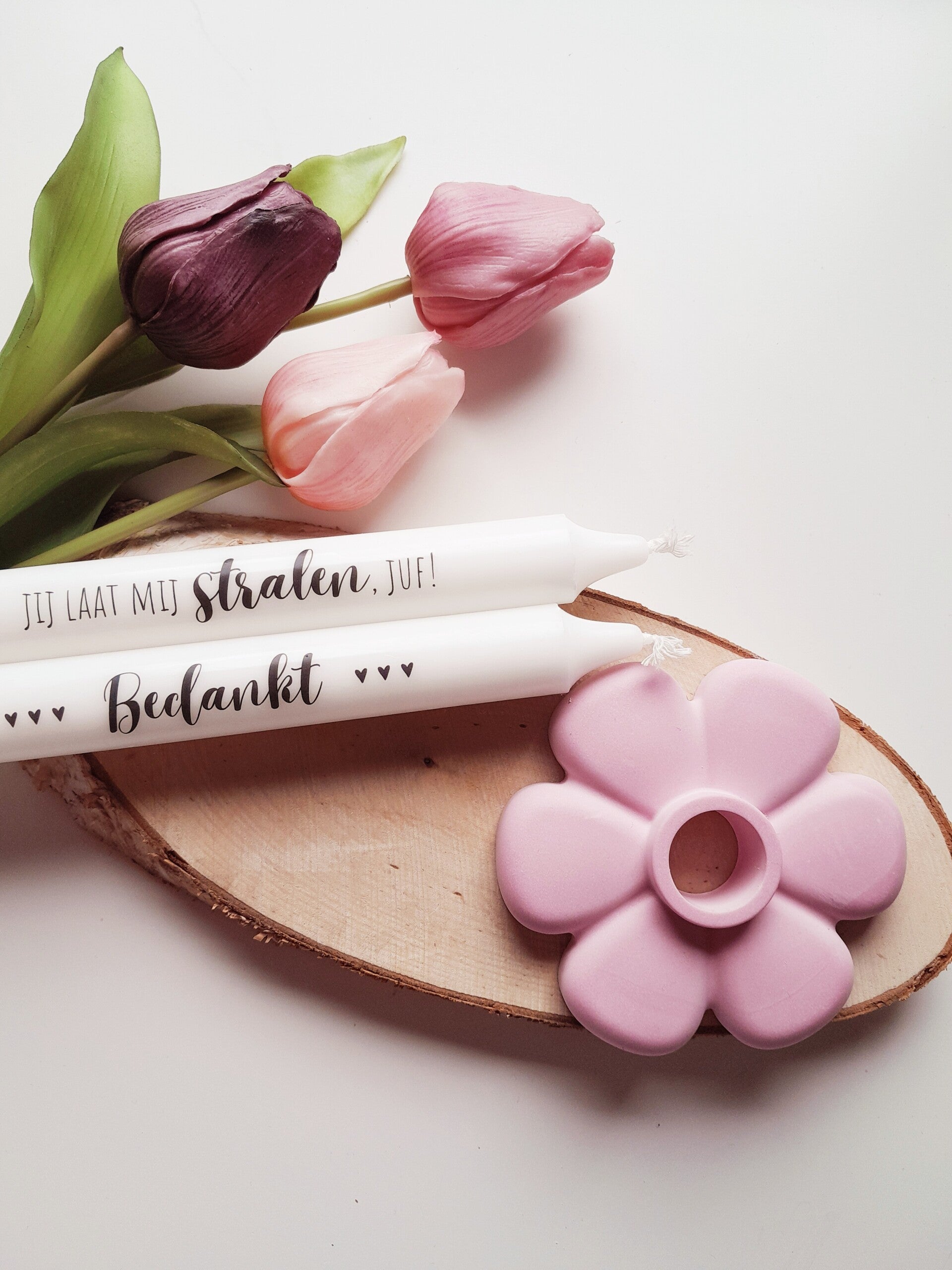 2 kaarsen met tekst