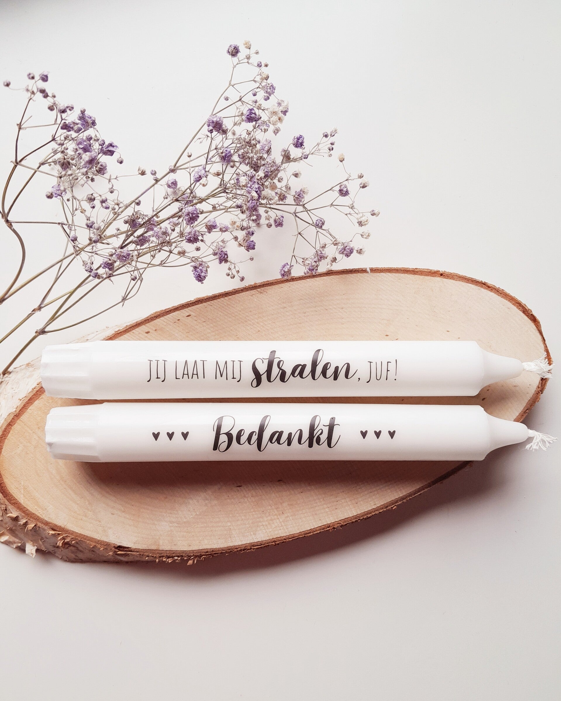 2 kaarsen "Jij laat mij stralen, juf!" - Bedankt